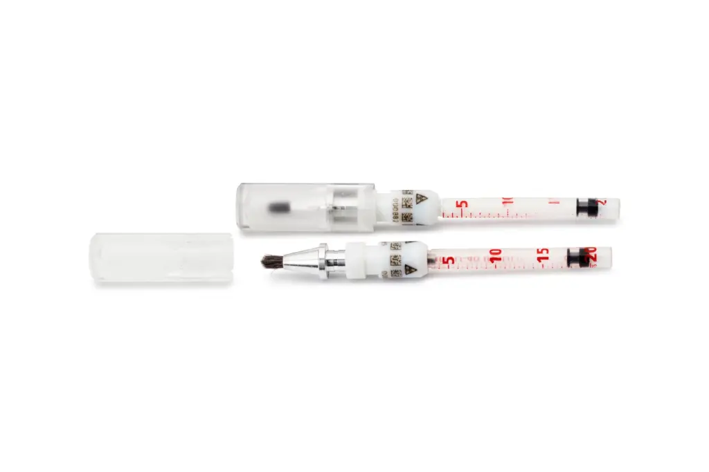 • In order to calculate the treatment time, the carpoule is again measured for residual activity after the application.